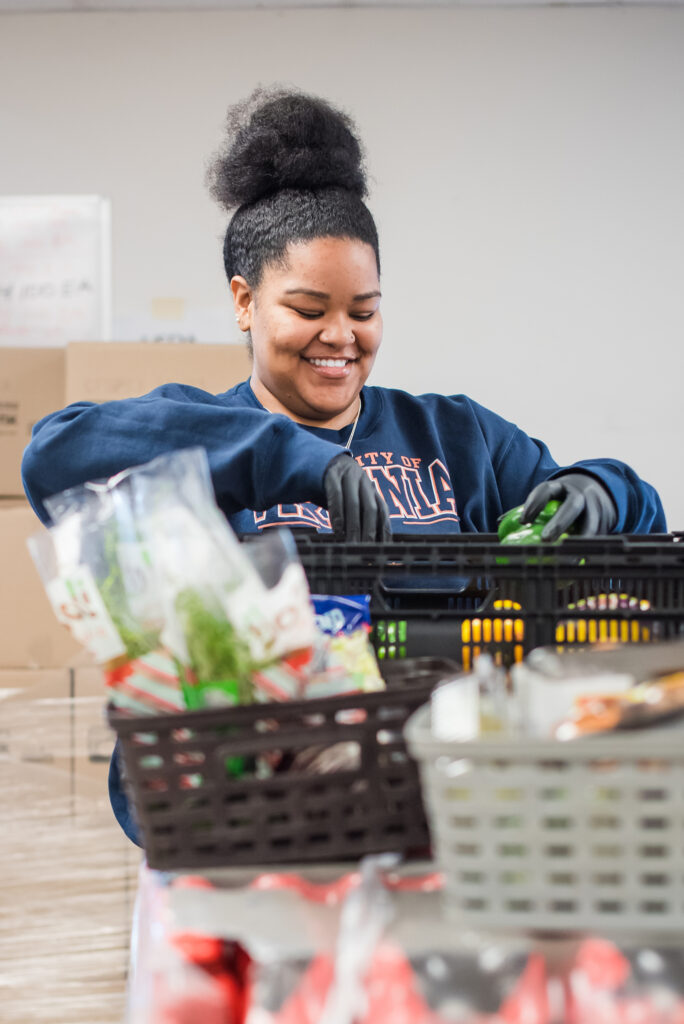 140 weekly volunteers help us inspect, sort, pack, and distribute fresh produce, meat, bread, dairy, and shelf-stable foods. Shifts are offered six days a week and range in length from 1 to 4 hours. Volunteers work alongside staff members; training is provided at the start of each shift, so no prior experience is needed. Some volunteers like to do only one job, while others will work in various positions to fully understand the variety of work in food charity.